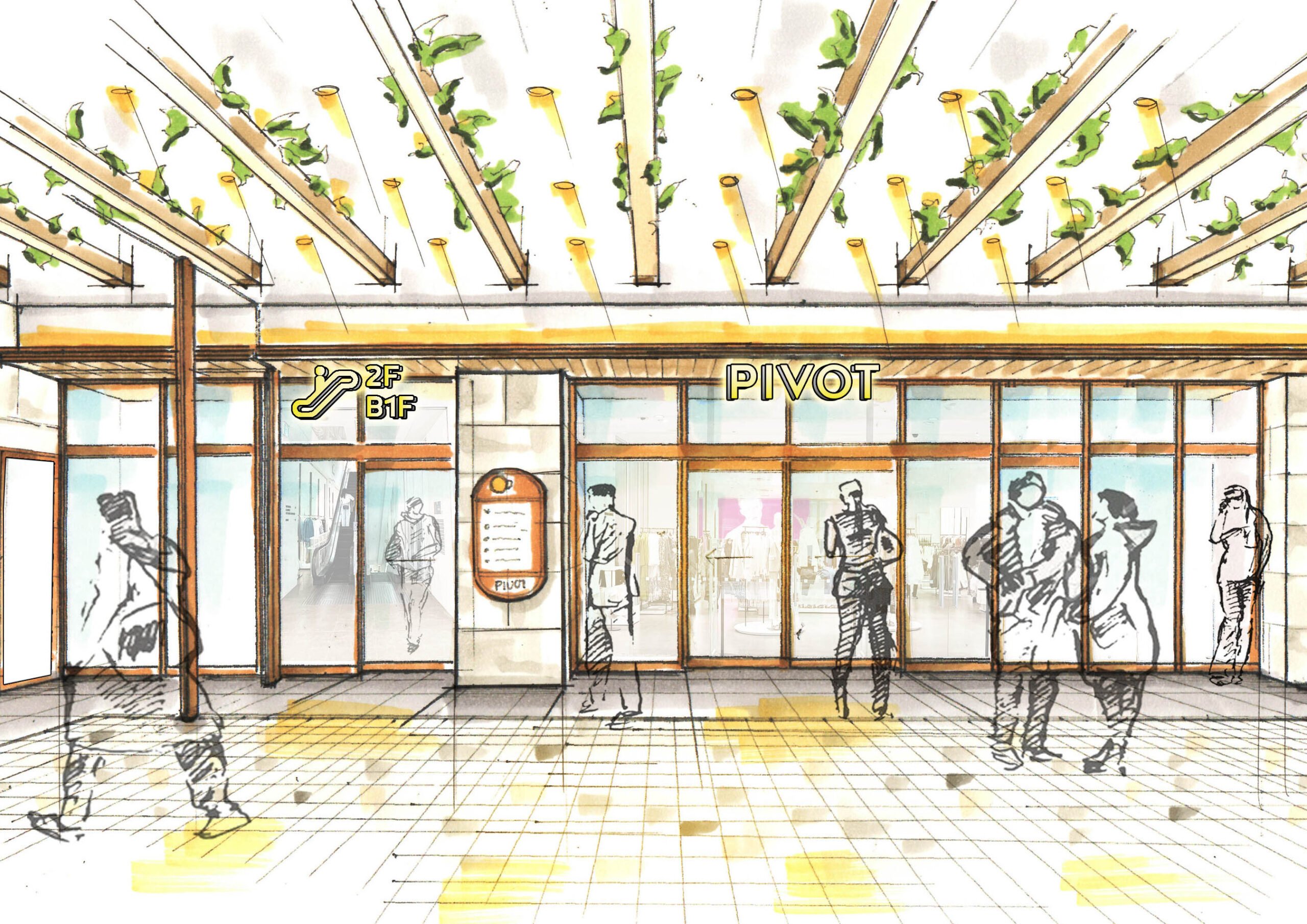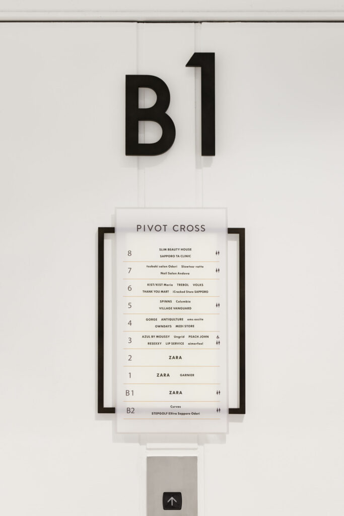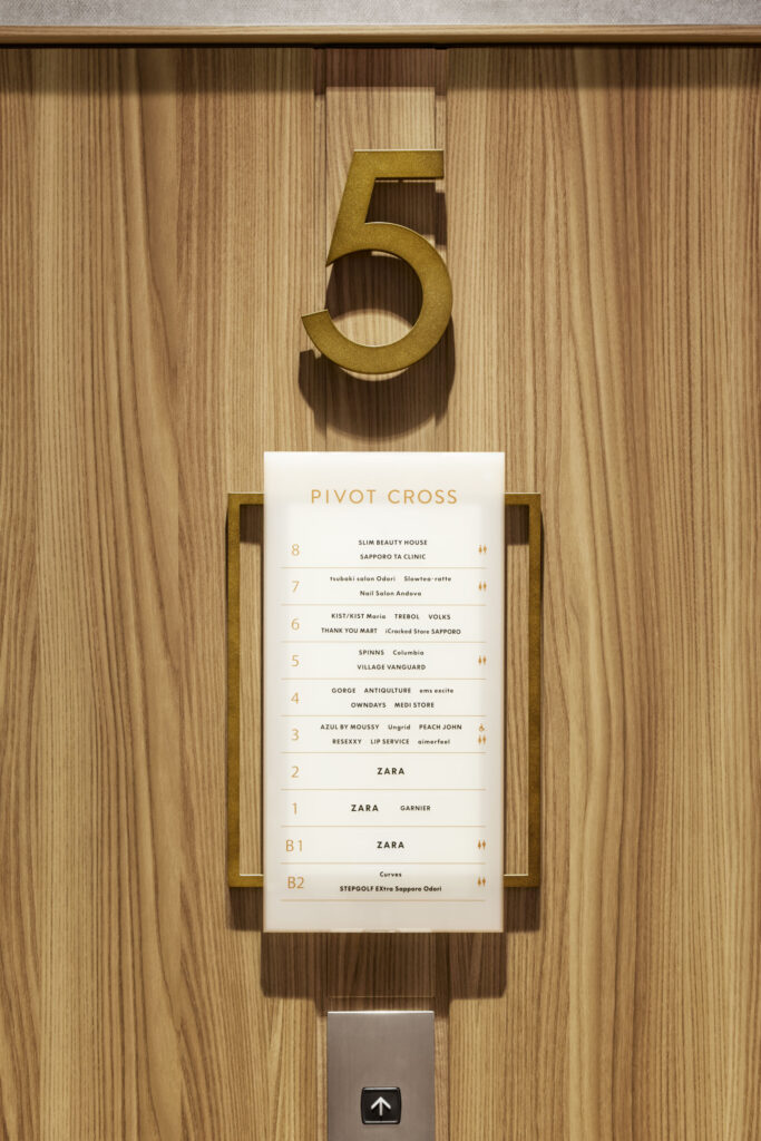 Relocation and renewal project for PIVOT, a longtime favorite of Sapporo residents. We were involved in the total design of the building, from the exterior and signage to the second basement to the eighth floor. The concept was “Natural & Playful. While using natural materials, we created a playful space by changing the theme of each floor and tenant composition.